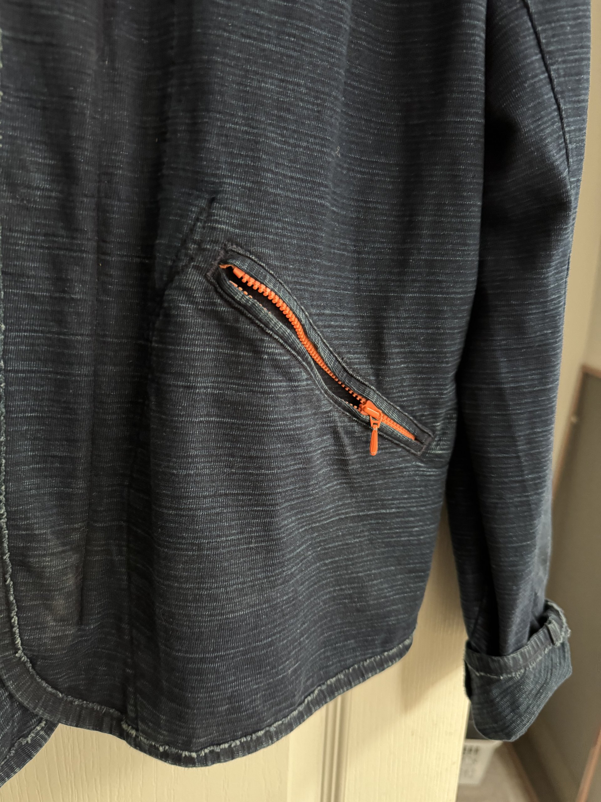 MADE IN JAPAN,THIS 100% INDIGO DYED JACKET, IS APPROX 10 YEARS OLD AND HAS WITH LITTLE WEAR AGED BEAUTIFULLY!