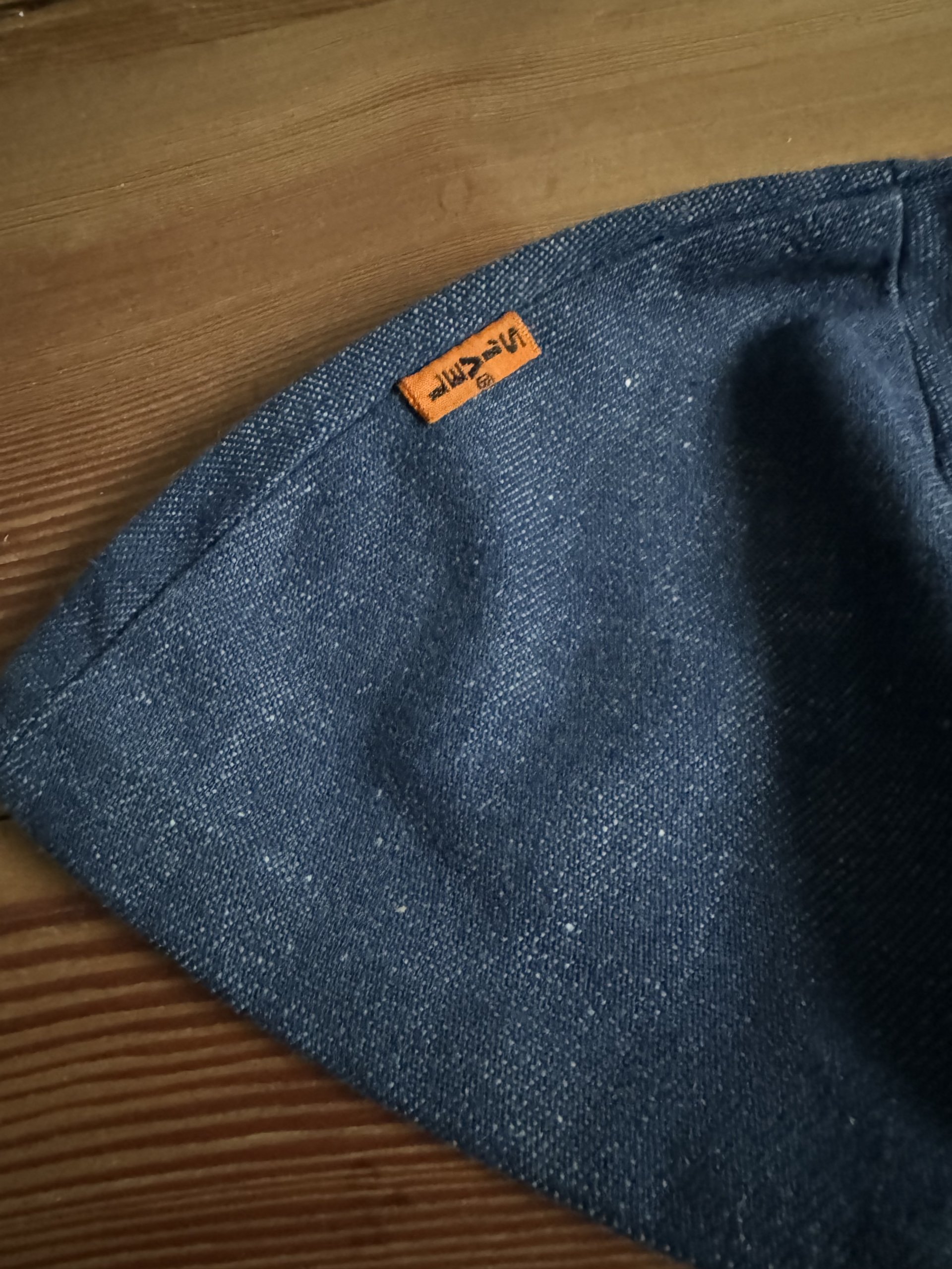 Dark Denim vintage collectible ORANGE TAB "yarmulke" excellent condition. Made in Canada in the 80's by a Levis licenced factory,perhaps unauthorized for a family member's Bar Mitzvah. A serious piece for the ultimate Denim Collector.